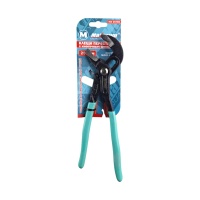 Клещи переставные с кнопочным фиксатором 250 мм используются в качестве трубного или разводного ключа. Губки с насечкой максимально надежно фиксируют даже поврежденную гайку или обрабатываемую деталь. Клещи могут применяться для фиксации и отворачивания/заворачивания предметов, не имеющих специального рабочего профиля.
